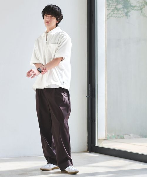FINE BASIC コットンナイロン ツイル 2プリーツ W4 ワイドスラックス