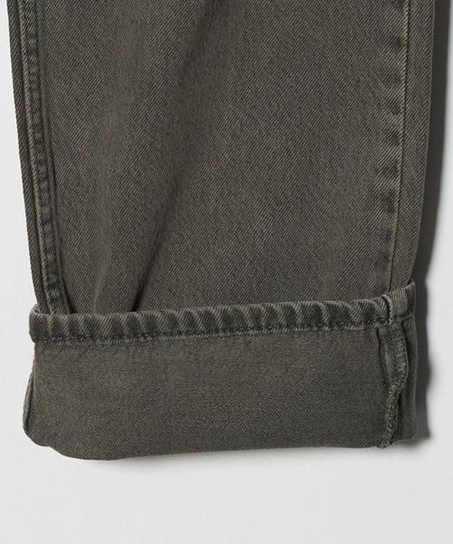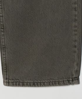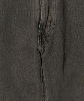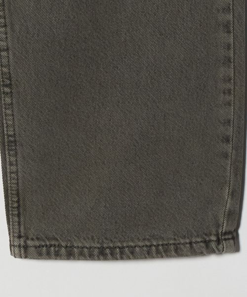 ブラックデニムをフェード加工したのちに、オリーブの製品染めを施したストレートデニム。