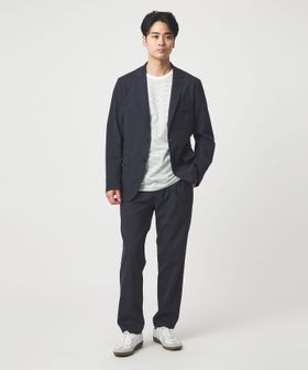 ジャストサイズのトップスをインナーに、同素材ジャケット(対象品番:32221000050)を合わせれば、ビジカジや結婚式の二次会などに活躍するセットアップスタイルが完成。