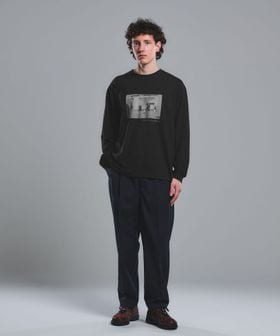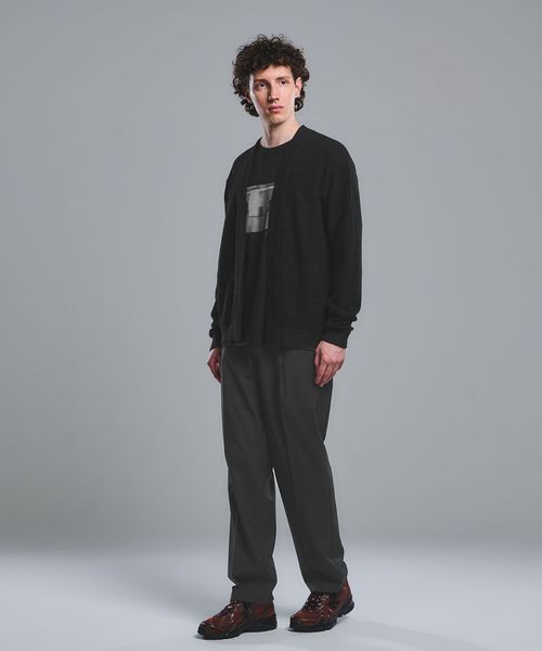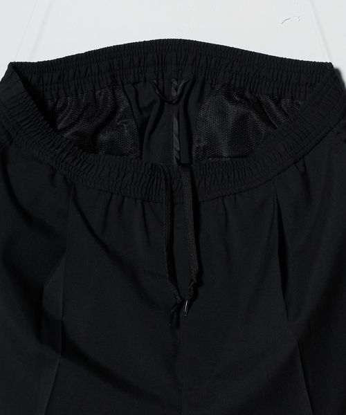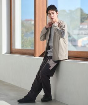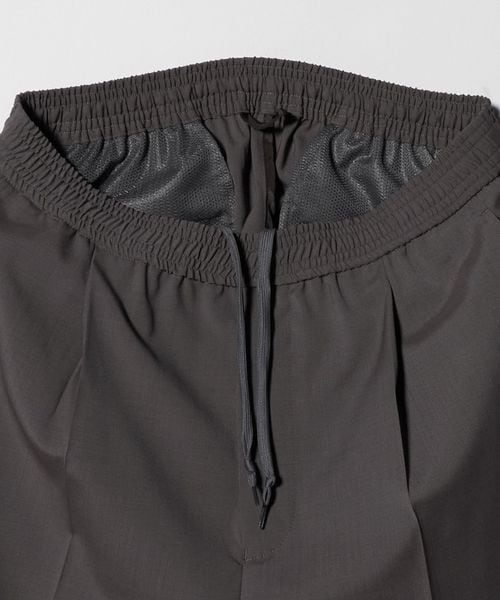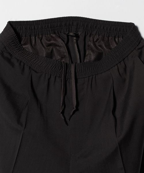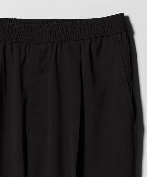 ワンタック入りのリラックスしたウエストイージー仕様ながら、クリース入りデザインや前開きファスナーのバランスが特徴。