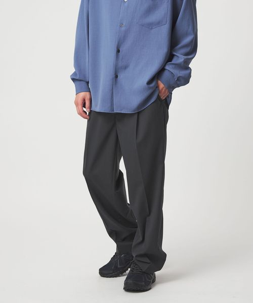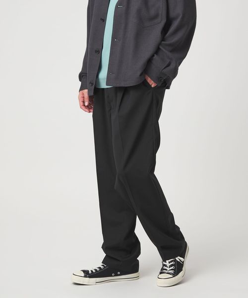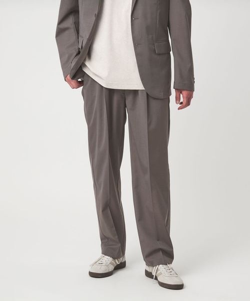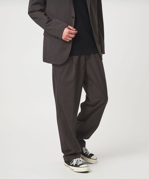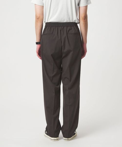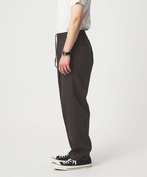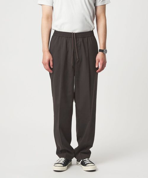 ワンタック入りのリラックスしたウエストイージー仕様ながら、クリース入りデザインや前開きファスナーのバランスが特徴。