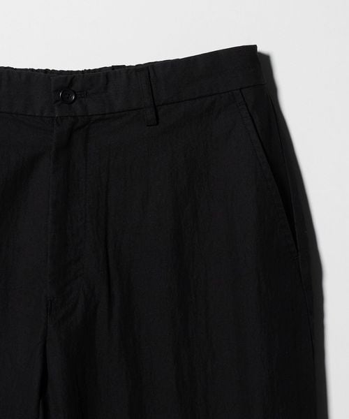 膝に向かって膨らみ、裾にかけて窄むバレル型のイージーパンツ。