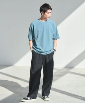 ワイドシルエットのパンツですので、トップスもゆとりのあるアイテムを取りれるとバランスよく仕上がります。