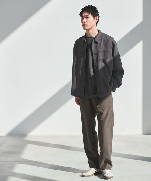 カジュアルな印象の羽織なので、ゆとりのあるシルエットのパンツと合わせるがおすすめ。