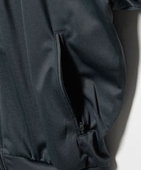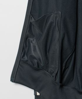ハイネックデザインにフロントファスナーを備えた仕様。