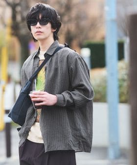 フィブリル ストライプ柄 長袖 ボックス シャツ