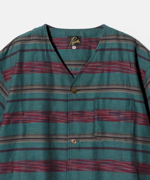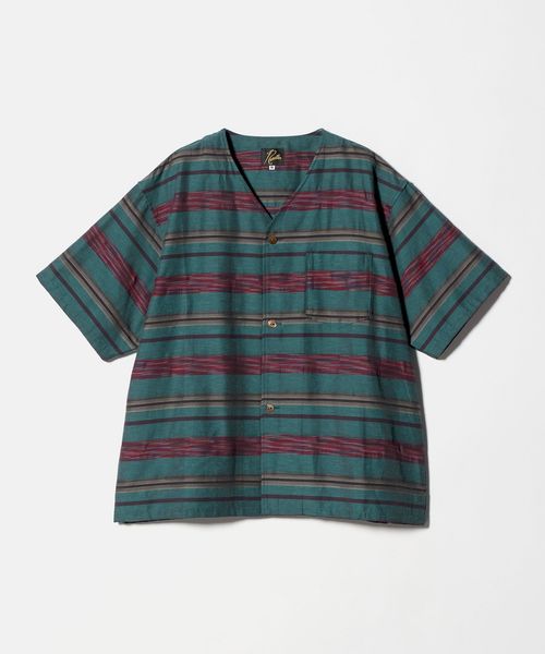 <NEEDLES>Vネック カスリ ボーダー 半袖 シャツ