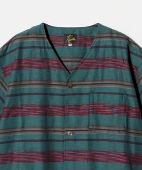 S/S V-Neck Shirt - Kasuri Border