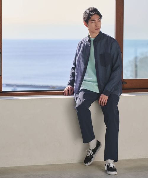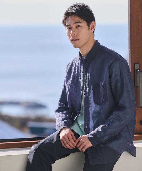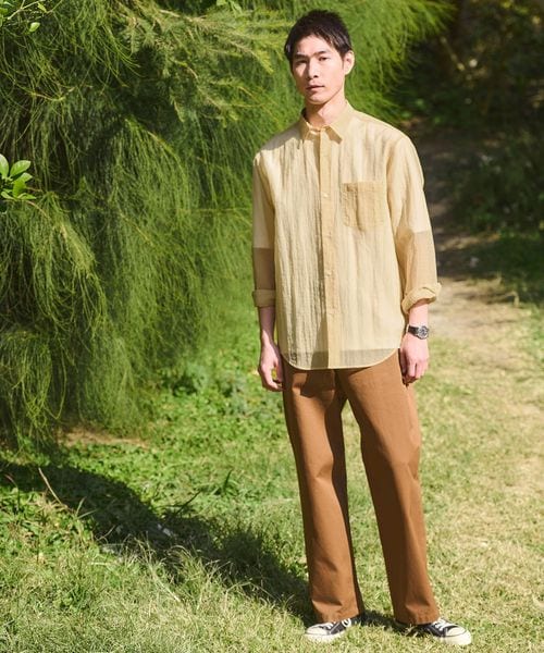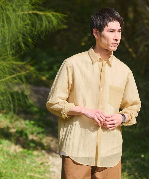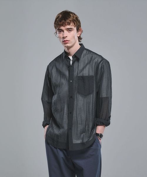 ナイロン シアー リップストップ 長袖 ジャストルーズ シャツ