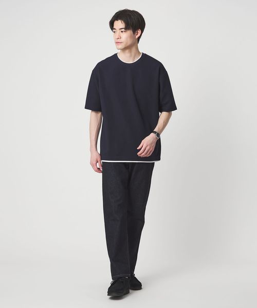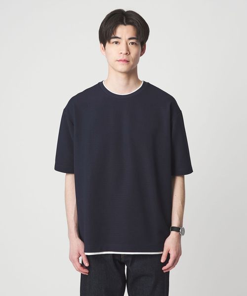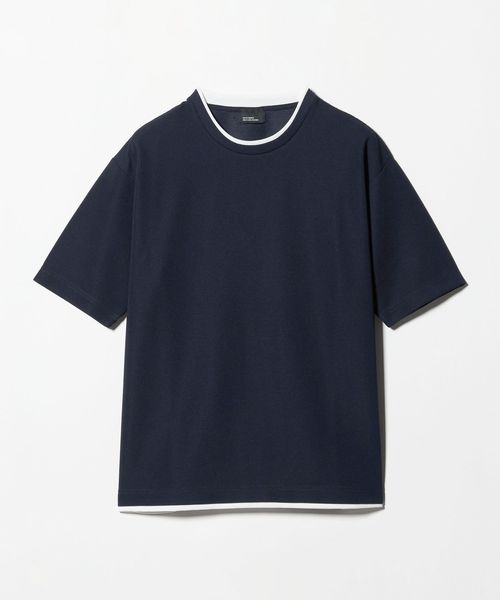 フェイクレイヤードデザインでアクセントを加えた、大人の半袖Tシャツ