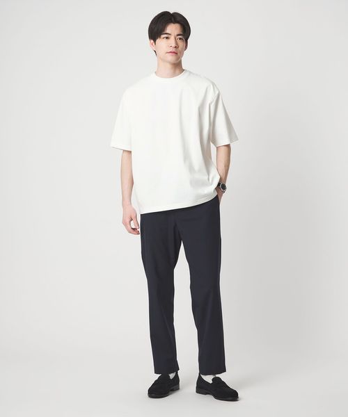 パンツは細身のスリムシルエットはもちろん、ゆったりとしたボトムスとも相性の良い一枚です。