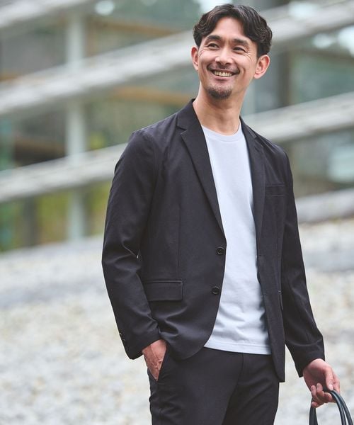 ジャケットは肩まわりの形を保ちつつ、身頃や袖はタイトすぎない絶妙なバランスに。