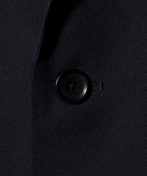 フロントボタンの間隔をわずかに狭くし、ラペル幅をやや広めに微調整して上品な印象にアップデートしています。