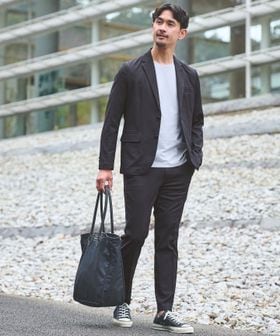 ジャケット単体にデニムやカジュアルスラックスを合わせたり、ボトムスも単品パンツとしてにゆとりのあるトップスを合わせるなど、セパレートでも幅広い着こなしが可能です。