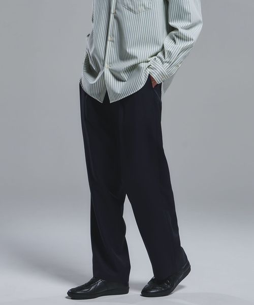 FINE BASIC トリアセテート ウール 2P ワイド スラックス パンツ W4