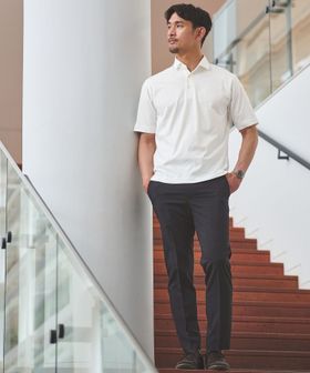 オンオフ兼用で活躍する、クリーンな雰囲気の半袖ポロシャツ