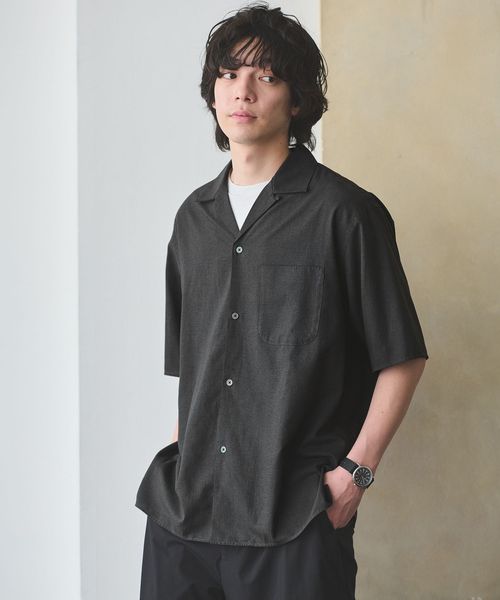 ・ゆったりとしたシルエットのオープンカラーシャツ