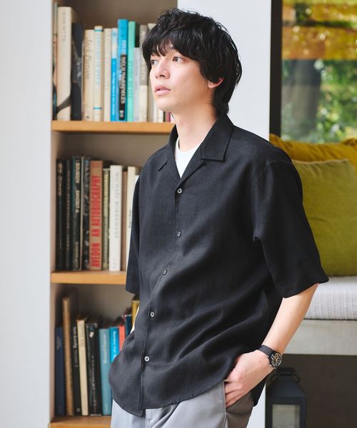 リネン素材を使用した爽やかな表情のオープンカラーシャツ