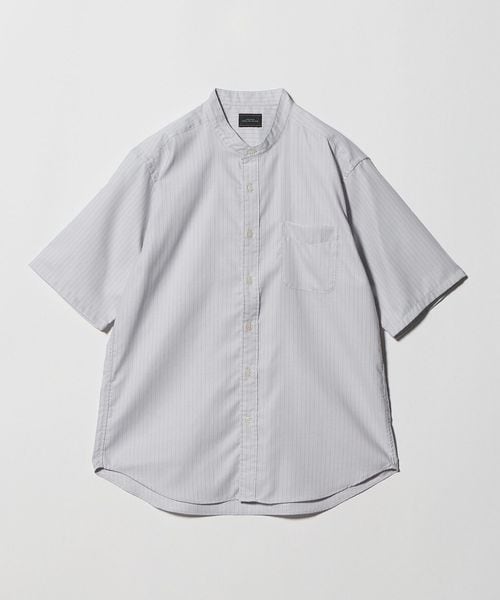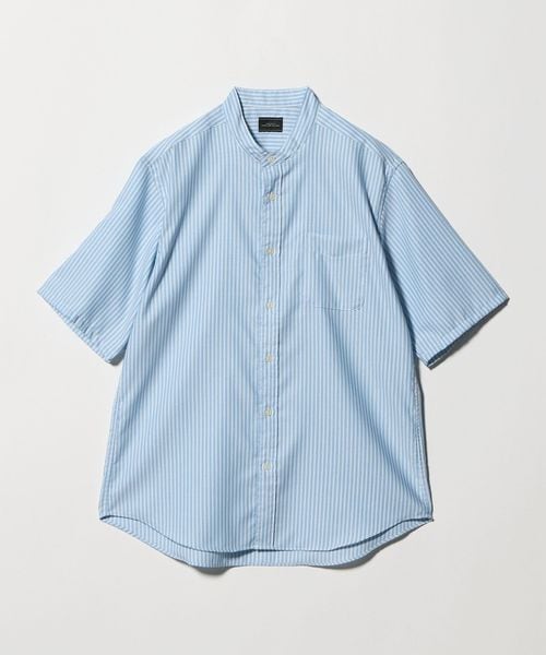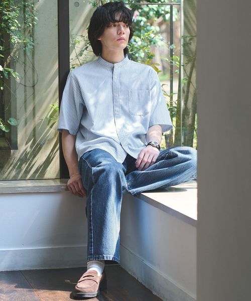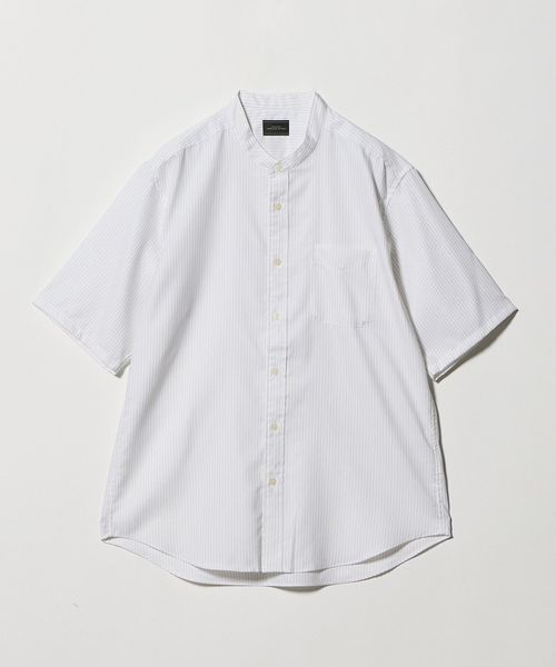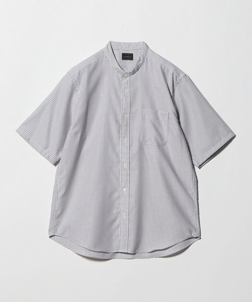 W/R オックスフォード ストライプ バンドカラー 半袖 シャツ