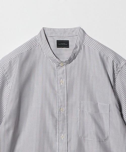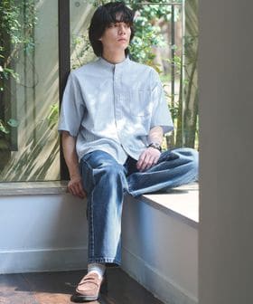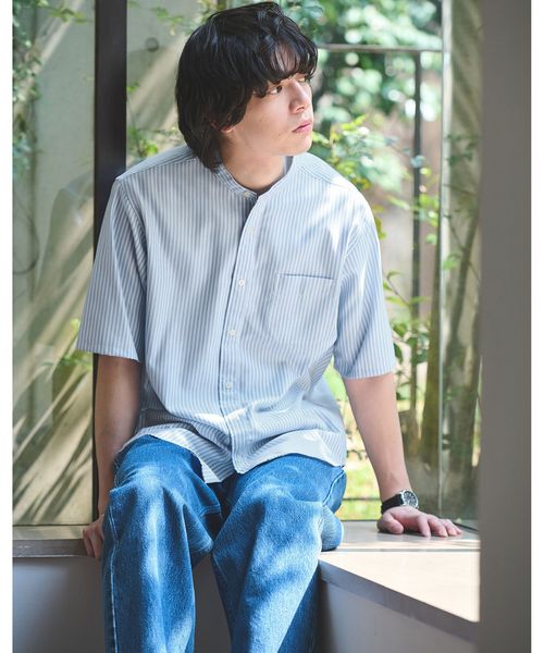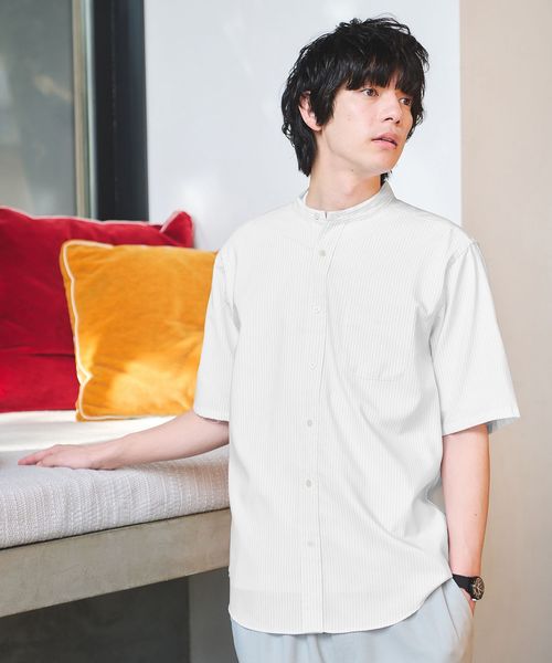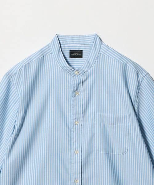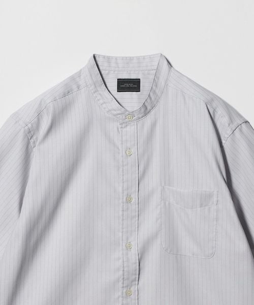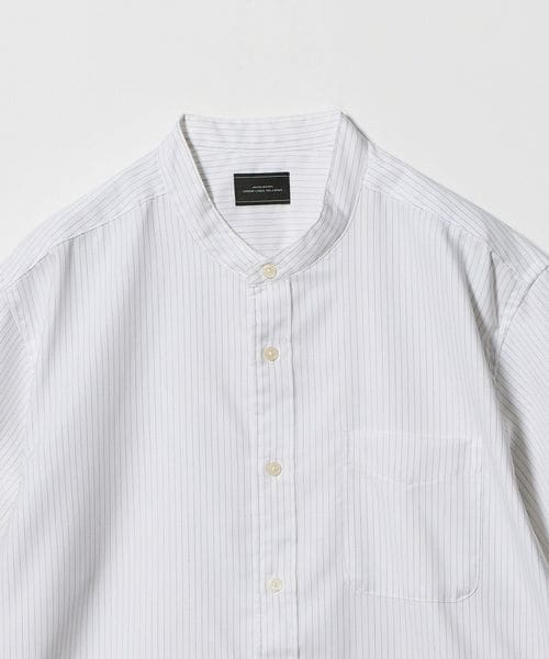 タイトすぎない、程よいフィット感が特徴のバンドカラーシャツ。