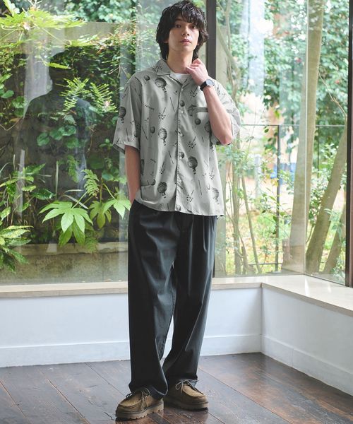ゆったりとしたシルエットで、カジュアルな印象のオープンカラーシャツです。