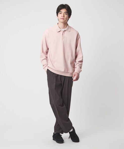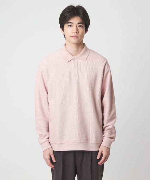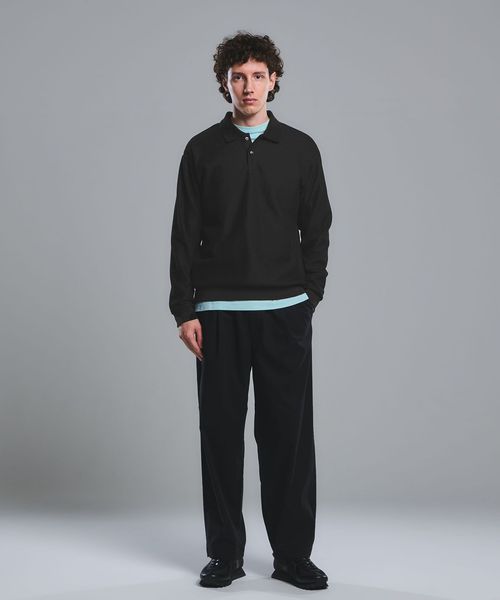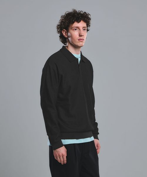 スッキリとクリーンな印象の長袖ポロシャツ。