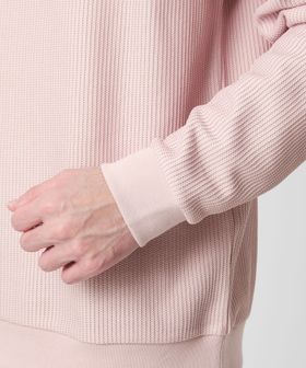 ラッセル編み機で編まれた生地を使用し、ざっくりとした編み目の凹凸が特徴。