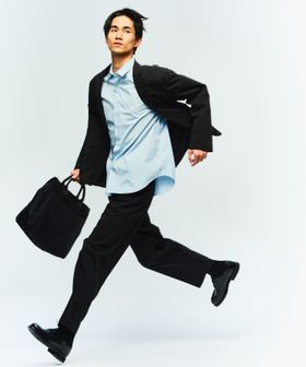 カットソーやバンドカラーシャツなどをインナーに取り入れてカジュアルに着こなすと◎。