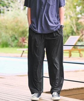 ゆったりとしたワイドシルエットのイージーパンツ。
