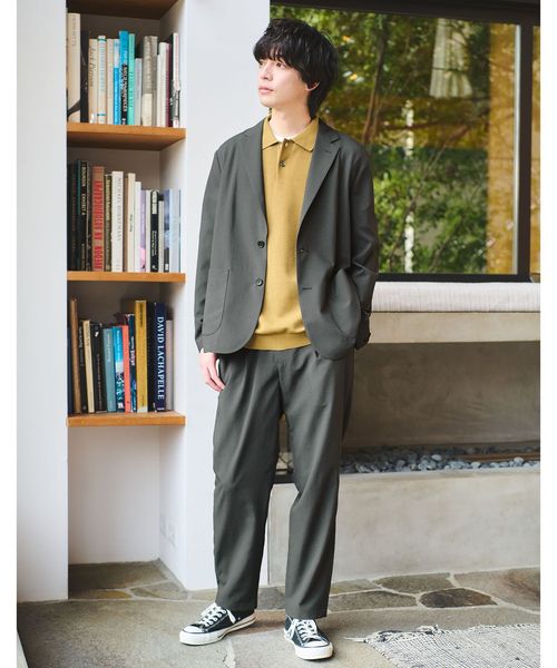 同素材を使用したジャケットとセットアップでの着こなしも〇。