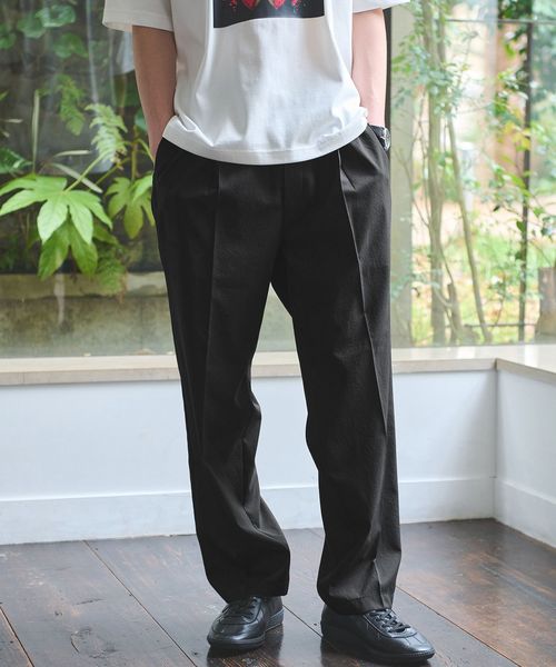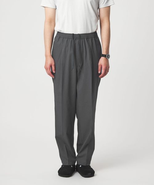 夏の暑い時期にも気軽に穿けるイージーパンツでありながら、きれいめな表情が魅力のアイテム。
