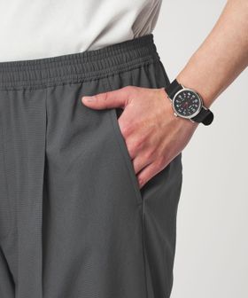 ワンプリーツ入りのリラックスしたウエストイージー仕様ながら、クリースを入れて上品さを加えたデザイン。