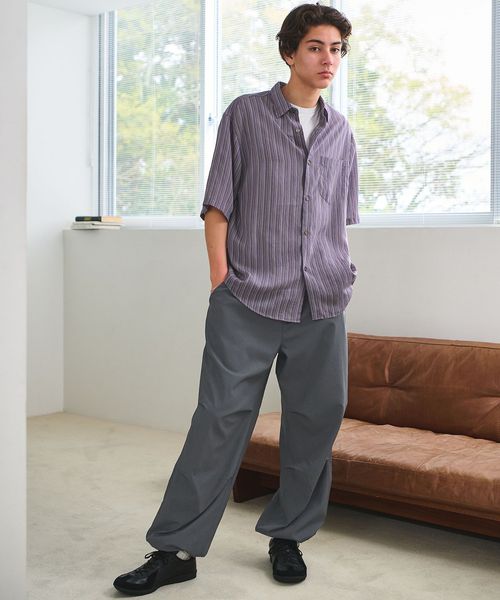 シアー感のあるシャツや柄のあるトップスとも相性が良く、春夏のカジュアルスタイルに活躍します。