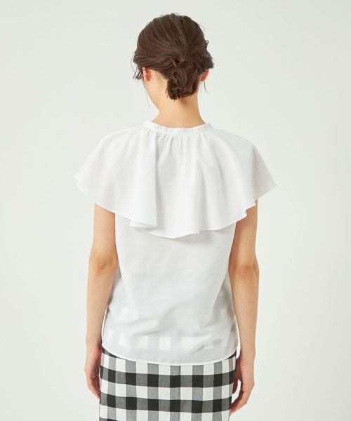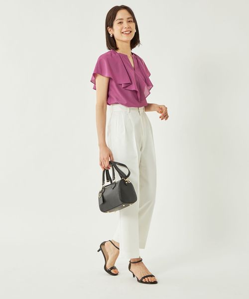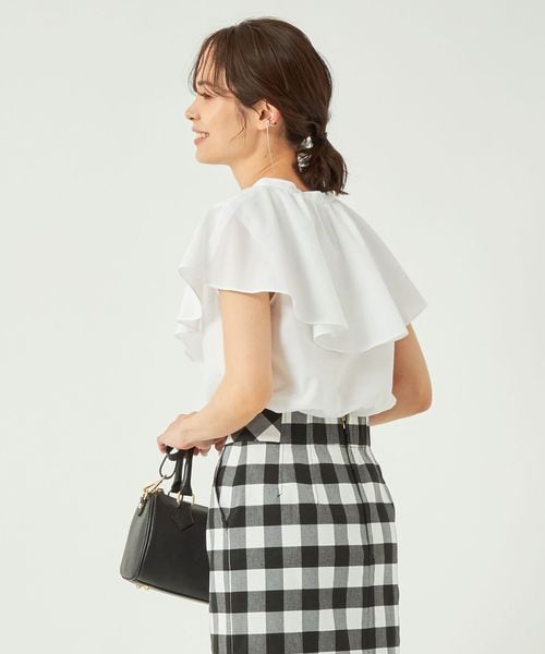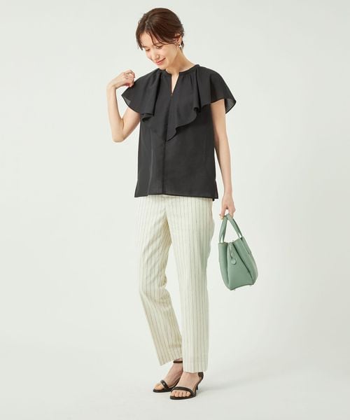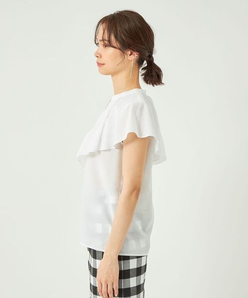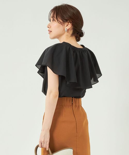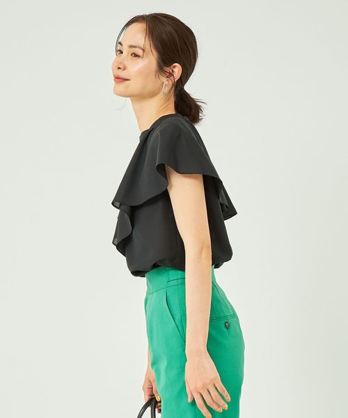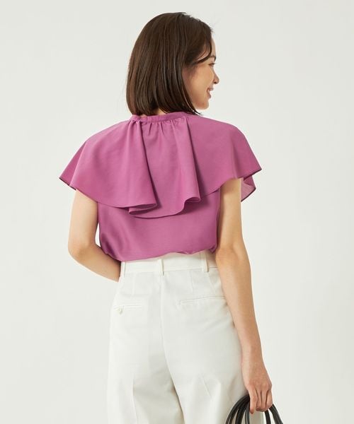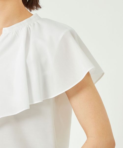 袖のラッフルデザインがポイントのプルオーバ―ブラウス。