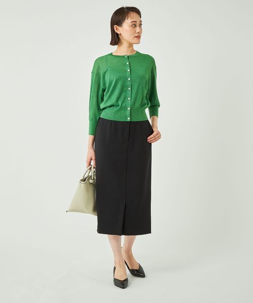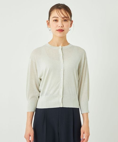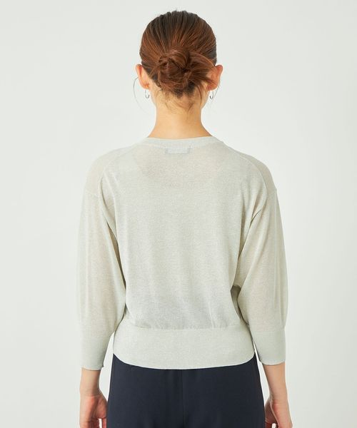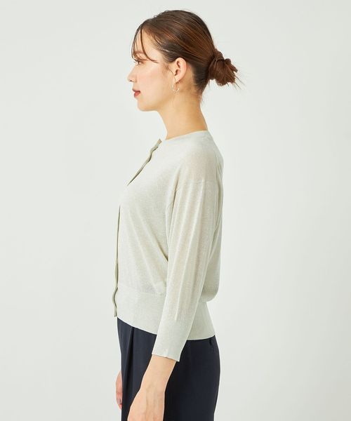 上品さのあるラメ素材の7分袖カーディガン