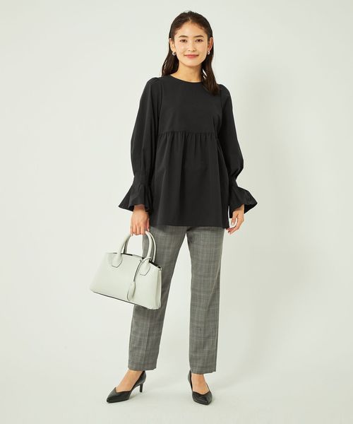 引き続き注目のペプラムシルエットは高めの切り替え位置ですっきり見えを叶えます。