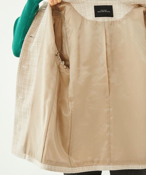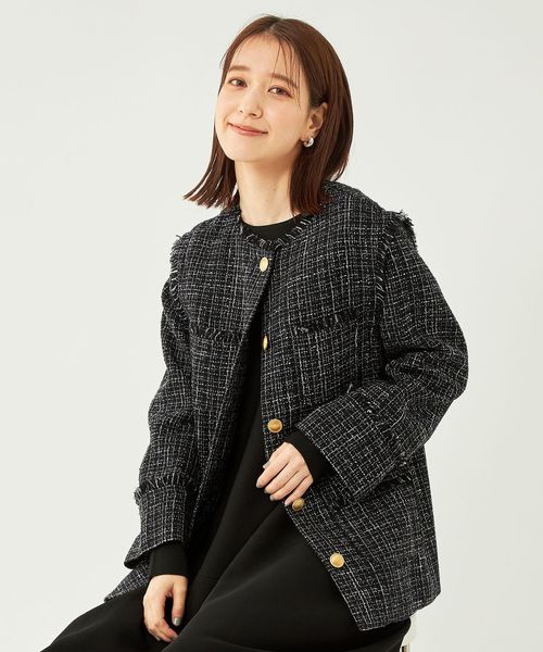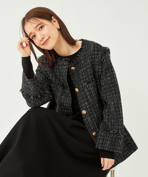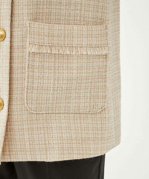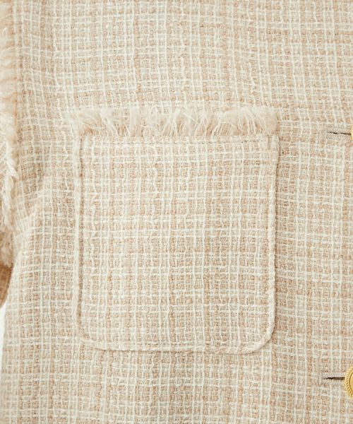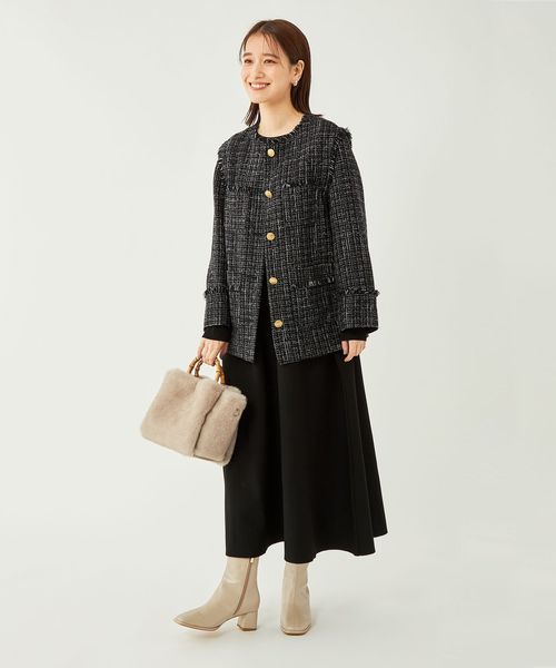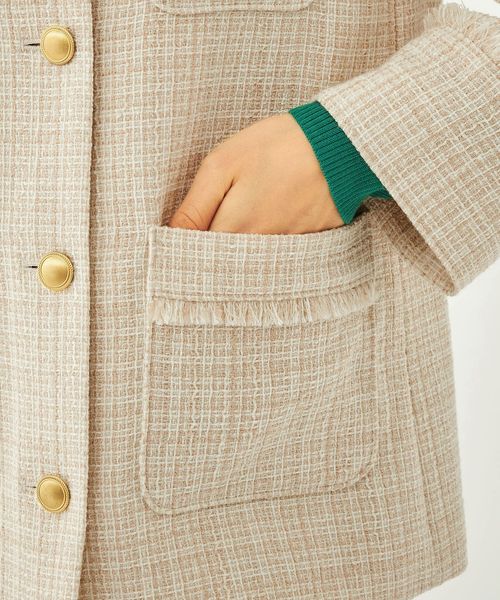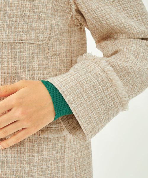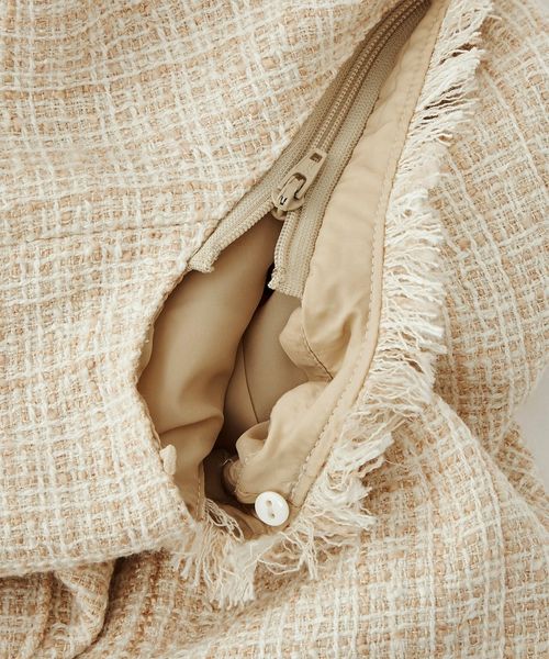 いろいろな色の糸を組み合わせて作られた、華やかなツイード素材。