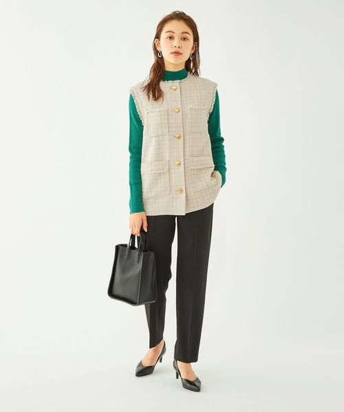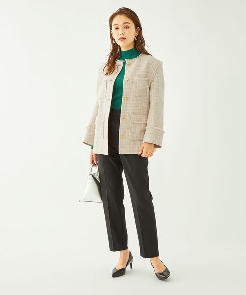 ボトムはIラインスカートやパンツとすっきりと合わせるのがおすすめです。