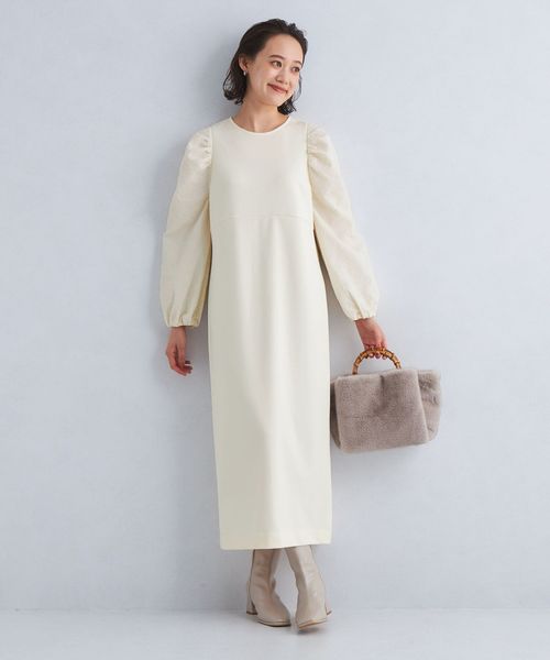 ジャカードのジゴスリーブがポイントのドッキングワンピース。