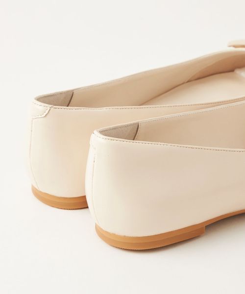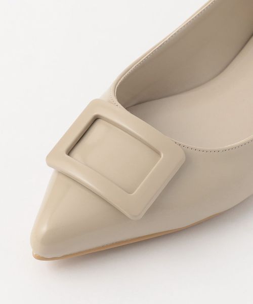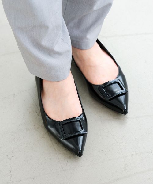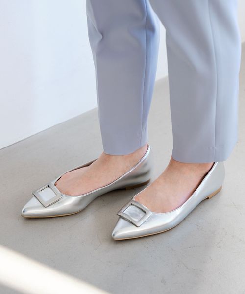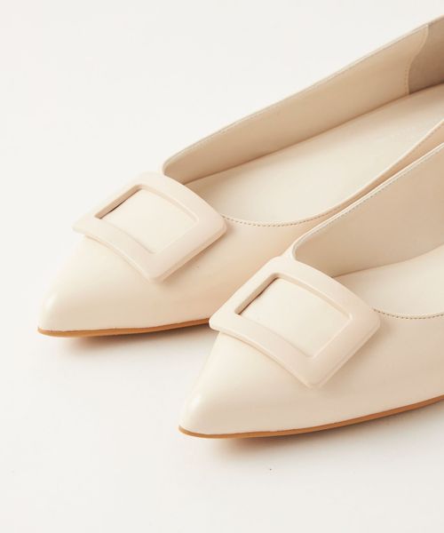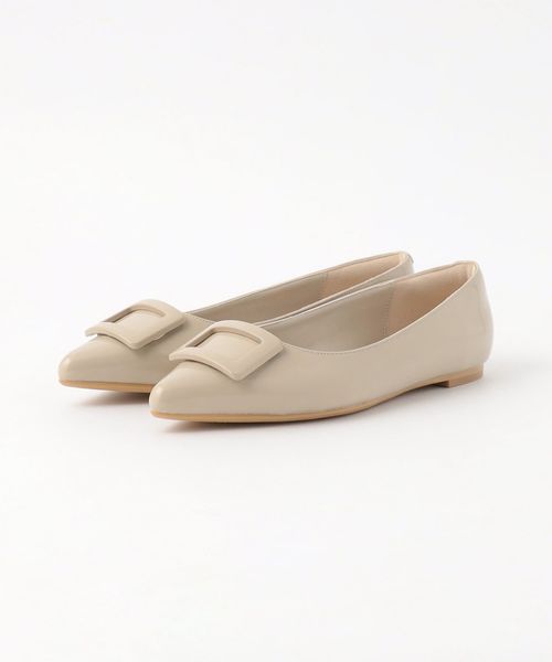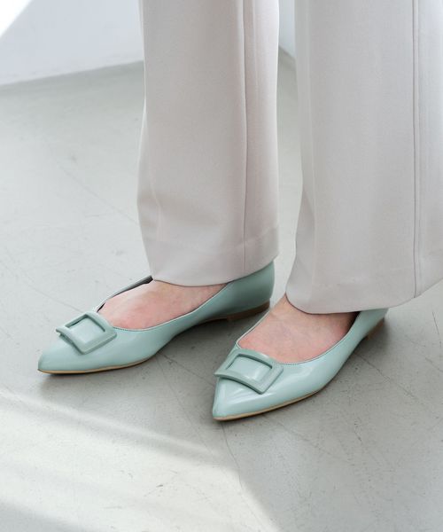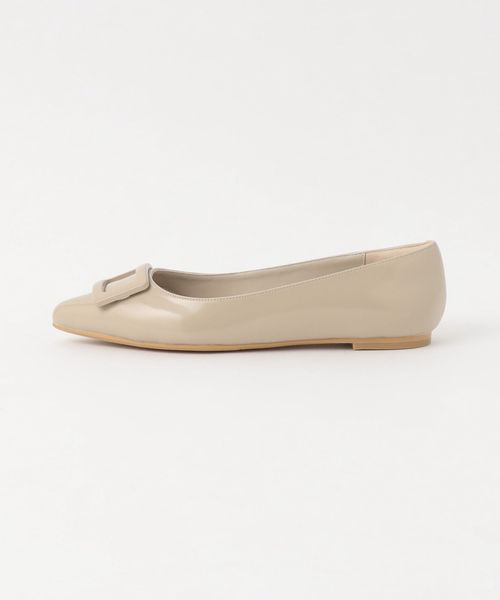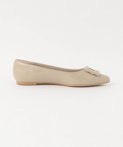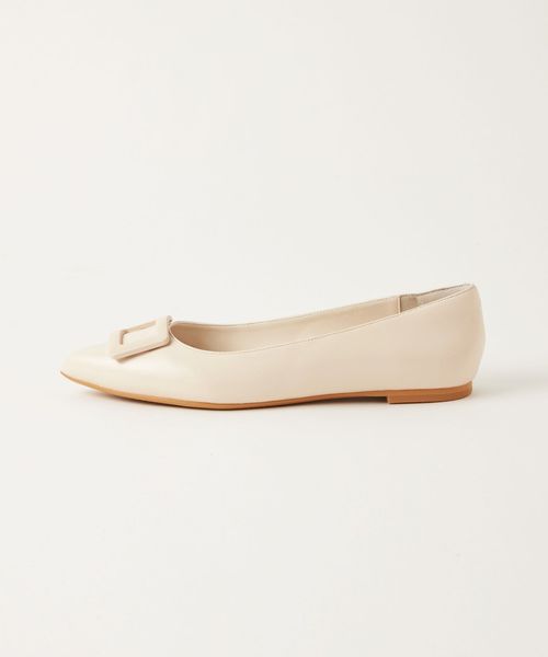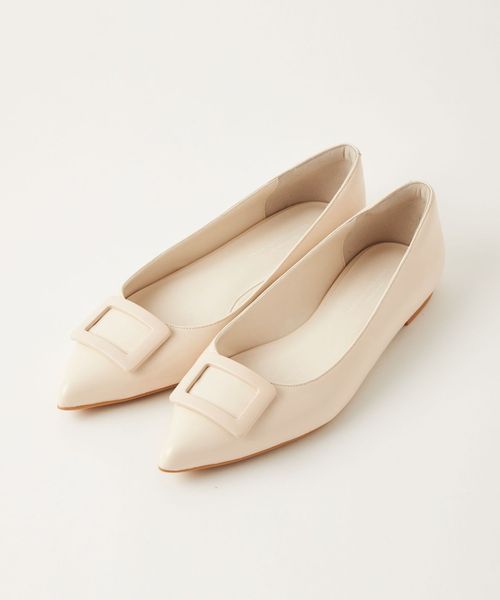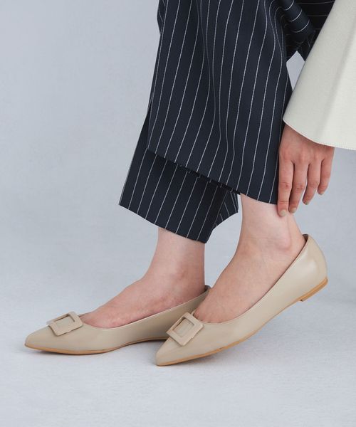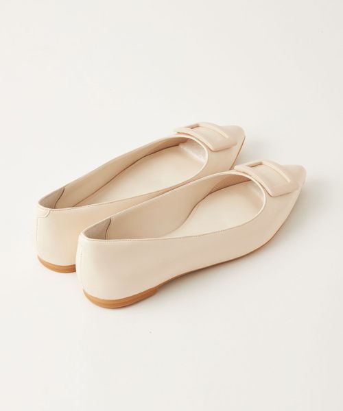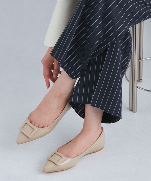 ワントーンでデザインしたモダンなバックルフラットシューズ。