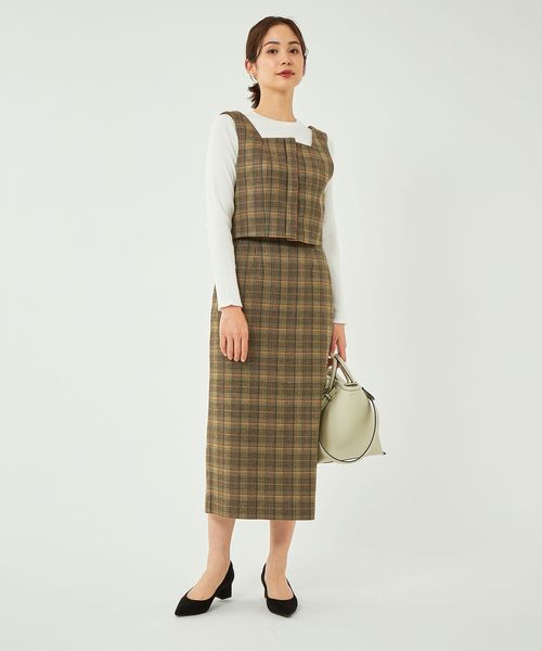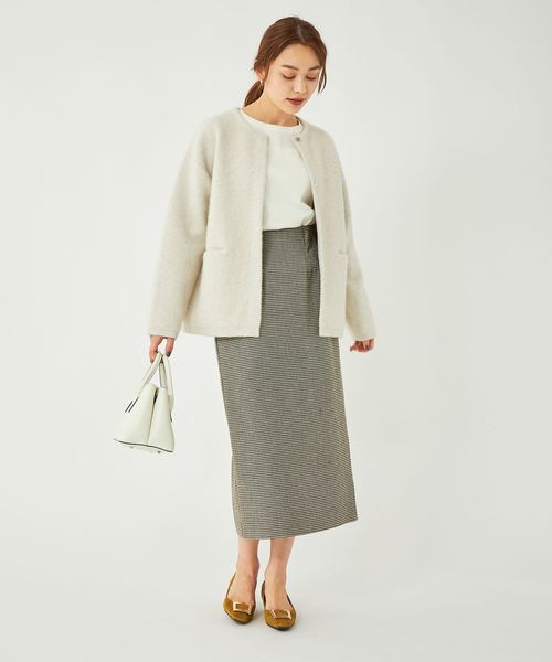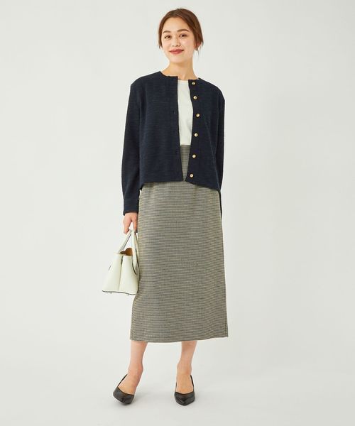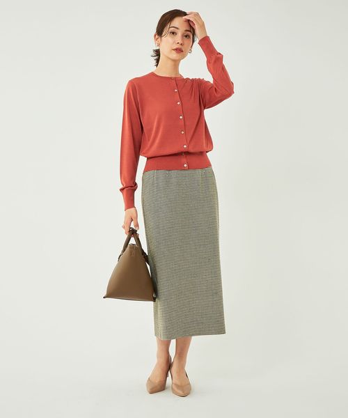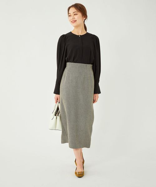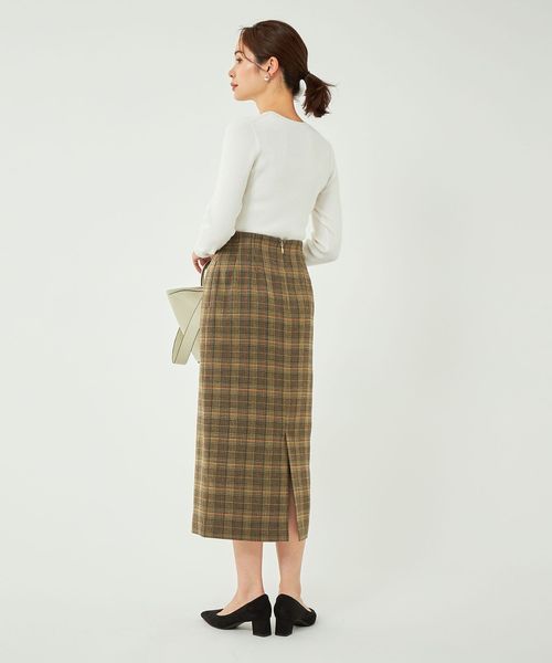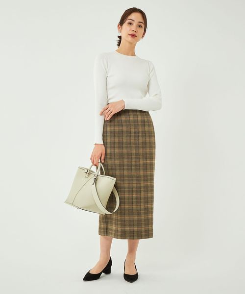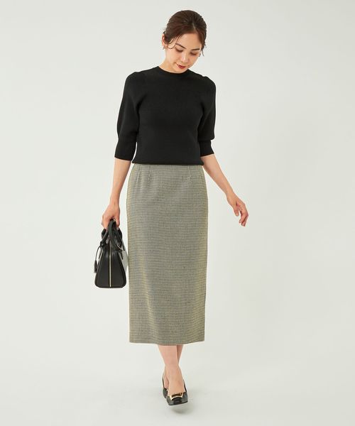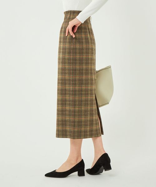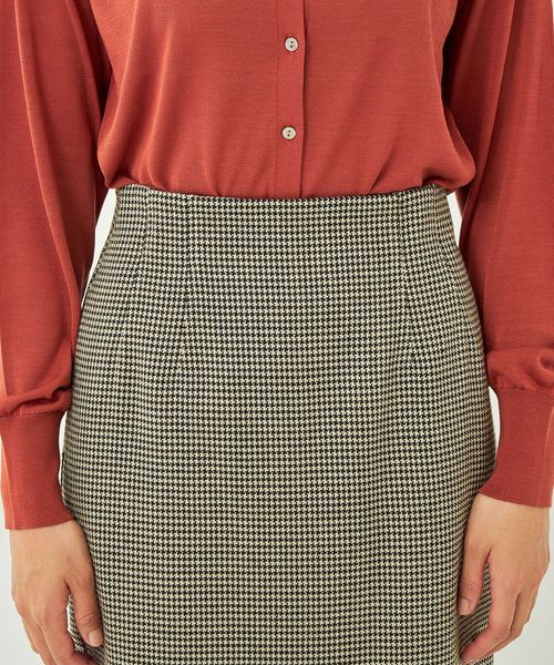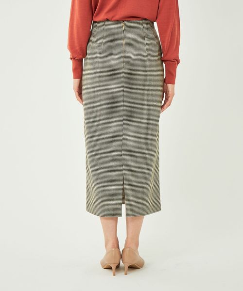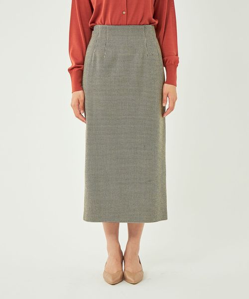 ハウンドトゥース Iライン ナロー タイト スカート ―防シワ―