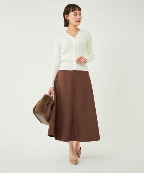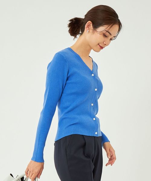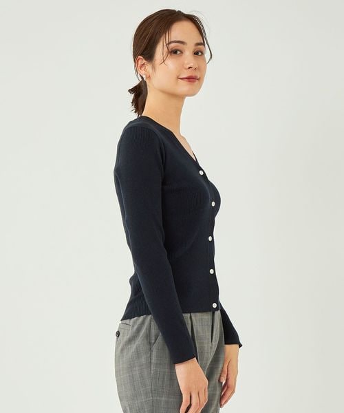 <1_OF MINE>リブ フィット Vネック ニット カーディガン ―ウォッシャブル―