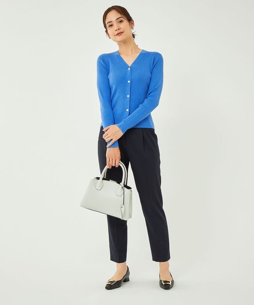 シンプルなデザインで着回しのきく万能Vネックカーディガン。