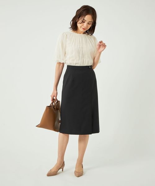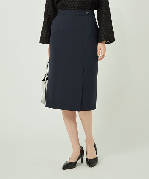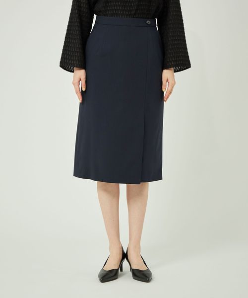 ラップスカート風のデザインで、シンプルながらもデザイン性のある一着です。