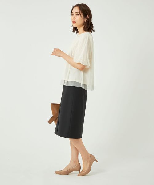 広がりすぎずぴったりしすぎないシルエットが魅力のタイトスカート。