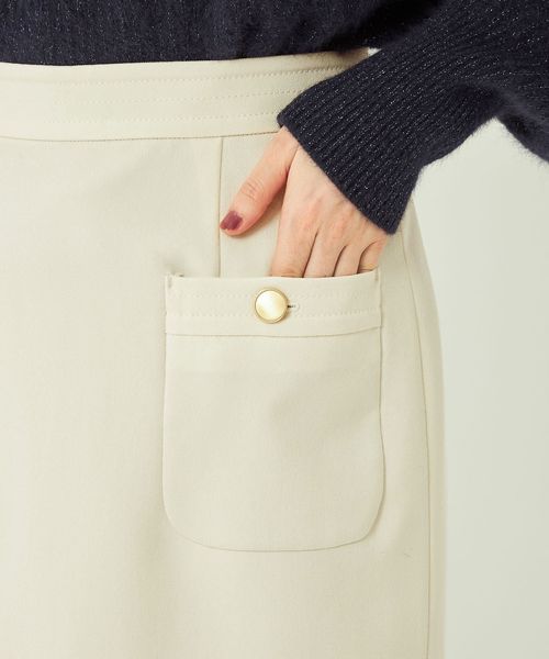パッチポケットの切り替えステッチディテール×キラッと光るゴールドボタンで上品な印象です。