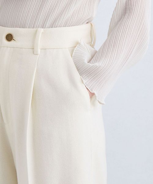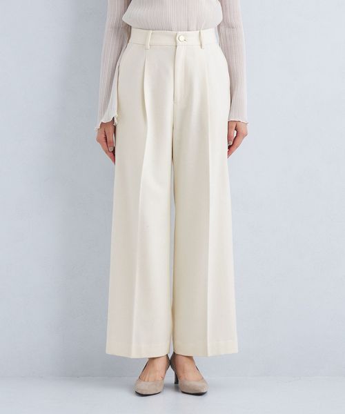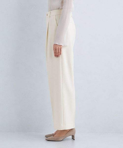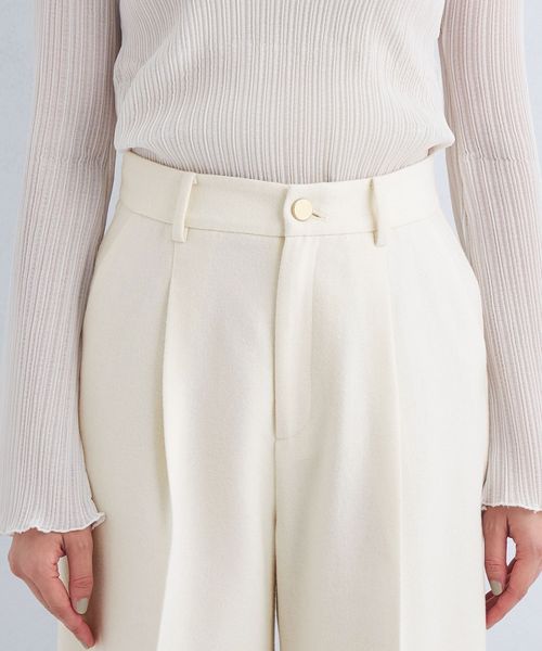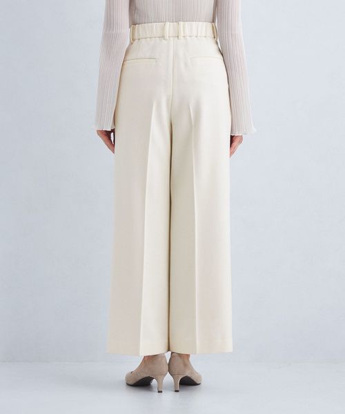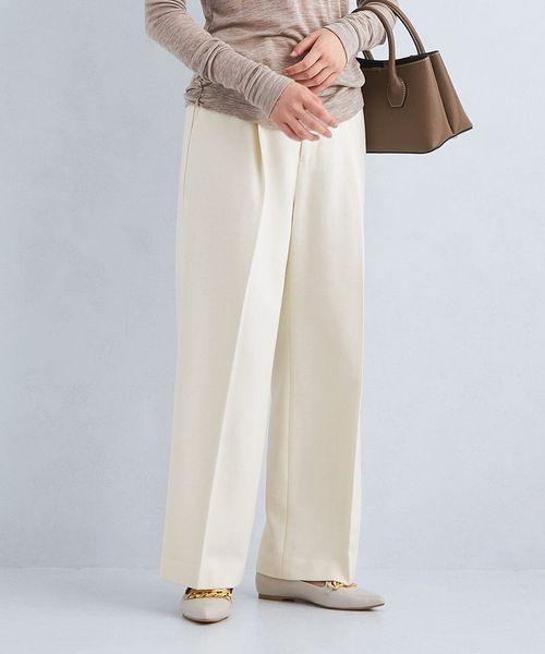 センタープレスが縦のラインを際立たせ、ワイドシルエットながらもすっきりと着用いただけます。