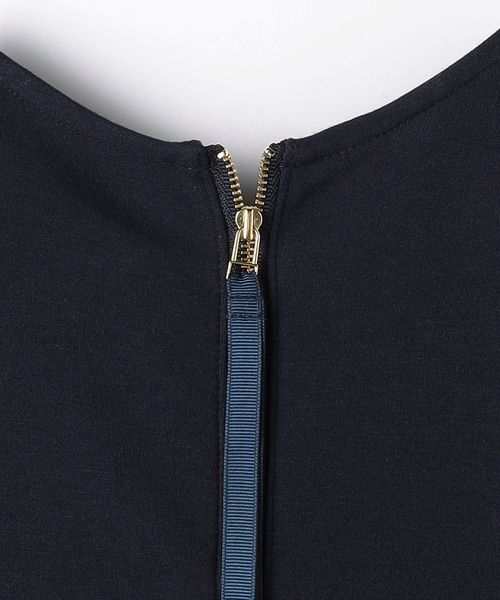 バックのファスナーの金具と、揺れるグログランリボンでよりフェミニンな印象に。