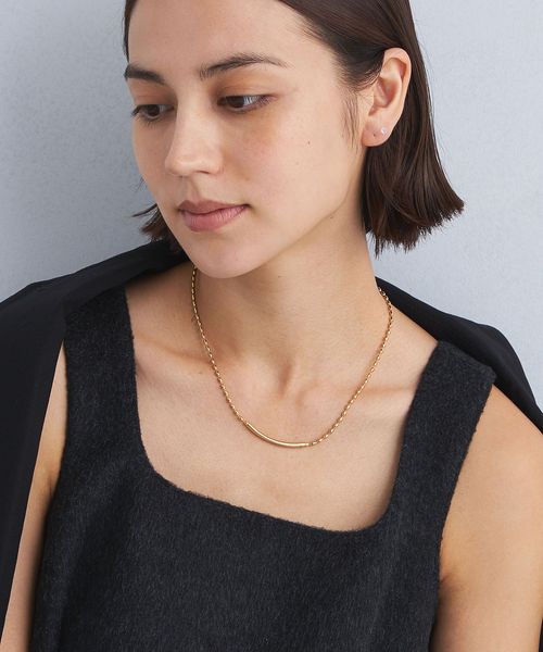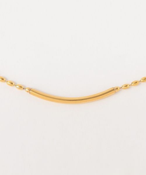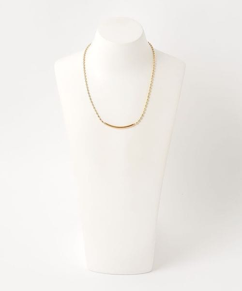 少し太めのボールチェーンとバーモチーフが良いバランスのネックレス。
