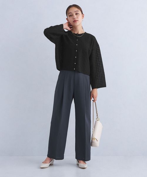 短めの着丈なのでワイドパンツやフレアスカートとの合わせが◎
